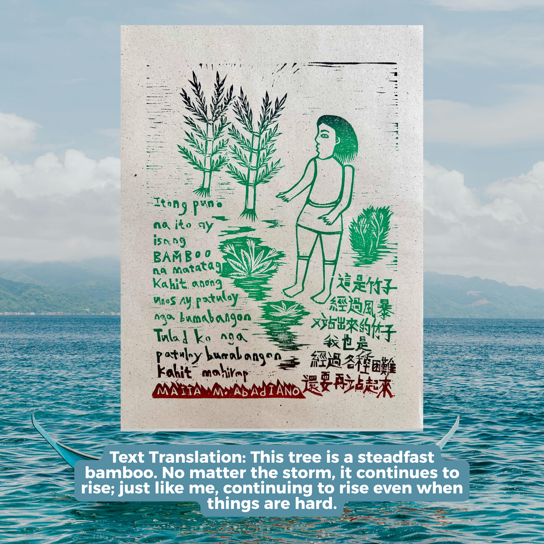 On the back, we honor the memory of Jennifer Laude, Ebeng Mayor, Lenie Perez Rivas, Estee Saway, Tats Tumicad, Cindy Jones Torres, Junjie Bangkiao, Mhelody Polan Bruno, Madonna Nierra, and Jessa Remiendo - Filipino trans and queer folks whose lives were cut short by state violence, neglect, and hate.
