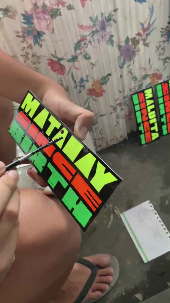 Like any handmade art, these hand-painted jeepney signages may have minor flaws such as chipped paint, smudges, or small dents due to the nature of the craft and the environment in which they are created. Each sign is manually dried in outdoor spaces, making them naturally exposed to the elements during creation.