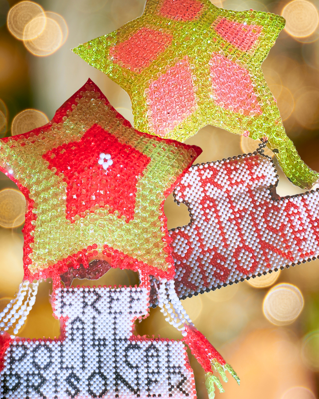 These Parols read “Free all political prisoner.” The missing “s” is a reminder that language, like grammar, has long been used as a tool of colonial control. Our community partners are not English speakers by privilege; they are the very political prisoners these Parols are calling freedom for. We appreciate your support of their craft!